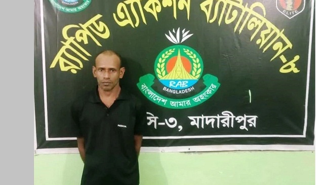 আজ র্যাবের পাঠানো এক প্রেস বিজ্ঞপ্তিতে এ তথ্য জানানো হয়েছে। বৃহস্পতিবার (২৫ সেপ্টেম্বর) বিকেল সাড়ে ৫ টার দিকে শিবচর উপজেলার পাঁচ্চর চর কান্দি এলাকা থেকে তাকে গ্রেফতার করা হয়। গ্রেফতারকৃত ব্যক্তির নাম রাসেল মাহমুদ সবুজ (৩০)। তিনি ঢাকার শেওড়াপাড়া এলাকার মৃত কাজী কেরামত আলীর ছেলে। তিনি বৃদ্ধা রানু বেগমের ঘরের একটি কক্ষে ভাড়া থাকতেন।