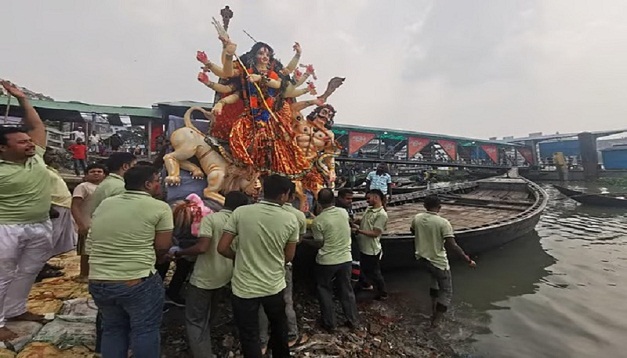 এদিকে বুড়িগঙ্গা নদীর ওপারে দক্ষিণ কেরানীগঞ্জের আগানগর ইউনিয়নের নাগরমহল ঘাট এলাকায় আরেকটি বিসর্জন মঞ্চ নির্মাণ করা হয়েছে।