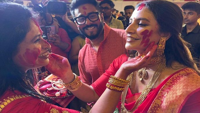 দূর্গাপূজার শেষ দিন, সকাল থেকেই কলকাতার আরবানা মণ্ডপে শুভশ্রী গঙ্গোপাধ্যায় লাল টুকটুকে শাড়ি ও স্বর্ণের গহনায় সাজিয়ে সিঁদুর খেলায় মেতে ওঠেন। প্রণাম শেষে তিনি বলেন, “এটাকে শেষ বলা যাবে না। আগামী বছর মা আবার আসবেন, তাই এটি এক বছরের অপেক্ষার শুরু। মা দুর্গা সবসময় আমাদের সাথেই থাকেন।” শুভশ্রীর সঙ্গে ছিলেন তাঁর স্বামী রাজ চক্রবর্তী, অভিনেতা অরিন্দম শীল, এবং স্ত্রী শুক্লা শীল, যাদেরও সিঁদুরে রঙিন করা হয়।