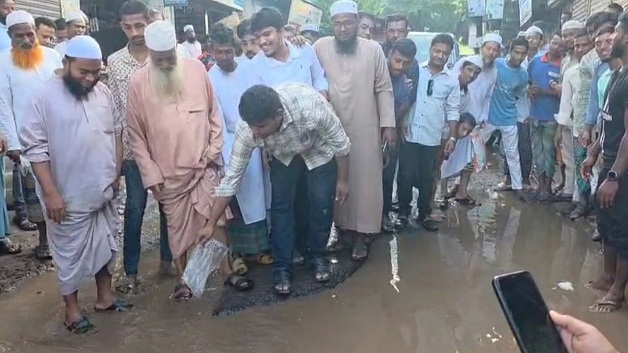 অনলাইন ডেস্ক : খানাখন্দে ভরা সড়ক সংস্কারের দাবিতে কুমিল্লার দেবিদ্বার-চান্দিনা সড়কে মাছ ছেড়ে প্রতীকী প্রতিবাদ করে জাতীয় নাগরিক পার্টির (এনসিপি) দক্ষিণাঞ্চলের মুখ্য সংগঠক হাসনাত আবদুল্লাহ।