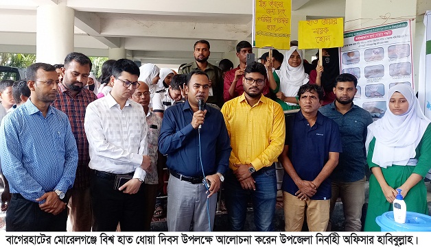 এস. এম সাইফুল ইসলাম কবির, বাগেরহাট জেলা প্রতিনিধি:বাগেরহাটের মোরেলগঞ্জে বিশ্ব হাত ধোয়া দিবস ২০২৫ উপলক্ষে বর্ণাঢ্য র্যালি, আলোচনা সভা ও হাত ধোয়া প্রদর্শনী অনুষ্ঠিত হয়েছে। বুধবার সকাল সাড়ে ১০ টায় উপজেলা প্রশাসন ও জনস্বাস্থ্য প্রকৌশলী অধিদপ্তরের আয়োজনে উপজেলা চত্বর থেকে বিভিন্ন শিক্ষা প্রতিষ্ঠানের শিক্ষার্থী, উপজেলা প্রশাসন বিভিন্ন এনজিও প্রতিনিধি এ বর্ণাঢ্য র্যালীতে অংশ নেয়। র্যালীটি বিভিন্ন সড়ক প্রদক্ষিন শেষে পরে আলোচনা সভায় প্রধান অতিথির উপজেলা নির্বাহী অফিসার হাবিবুল্লাহ।