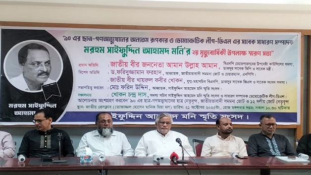 মঙ্গলবার সকালে জাতীয় প্রেসক্লাবে ৯০’র ছাত্র- গণঅভ্যুত্থানের অন্যতম রুপকার ডেমাক্রেটিক লীগ-ডিএল এর সাবেক সাধারণ সম্পাদক সাইফুদ্দিন আহমেদ মনির ২য় মৃত্যুবার্ষিকী উপলক্ষে আয়োজিত স্মরণ সভায় তিনি একথা বলেন।
