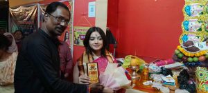 এরপর ক্লাবের তরফ থেকে “ফুলকি” কে উত্তরীয় পরিয়ে, পুষ্পস্তবক , স্মারক হাতে দিয়ে, বাংলার মিষ্টি তুলে দেন।