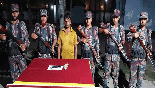 বিজিবি সূত্রে জানা যায়, সুবেদার মো. ফখরুল ইসলামের নেতৃত্বে একটি বিশেষ টহলদল দৌলতপুর উত্তরপাড়া এলাকায় অভিযান চালায়। এ সময় ধান রাখার একটি গোলাঘর তল্লাশি করে একটি দেশি পিস্তল উদ্ধার করা হয়।