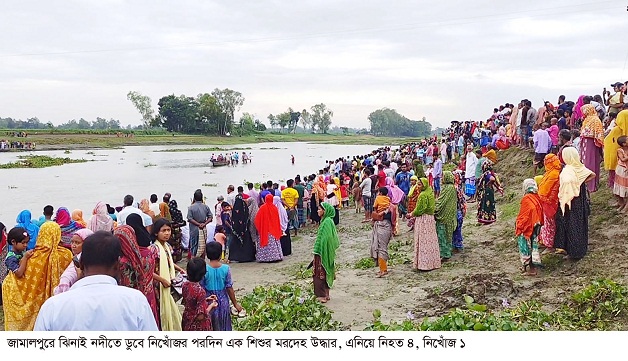 জামালপুর ফায়ার সার্ভিসের টিম লিডার রফিকুল ইসলাম জানান, মাদারগঞ্জ উপজেলার চর ভাটিয়ানী এলাকায় ঝিনাই নদী থেকে কুলসুম নামে ওই শিশুর মরদেহ উদ্ধার করে ফায়ার সার্ভিসের ডুবুরী দল। নিহত কুলসুম একই উপজেলার কাজিয়াবাড়ী গ্রামের আজাদের মেয়ে। এ পর্যন্ত এই দুর্ঘটনায় ৪ জন শিশু নিহত হয়েছে। গতকাল শুক্রবার বিকেলে ঝিনাই নদীতে গোসল করার সময় পানিতে ডুবে যায় ৫ জন শিশু। পরে ফায়ার সার্ভিসের ডুবুরীরা সন্ধ্যায় সহোদর ভাই-বোনসহ তিনজনের মরদেহ উদ্ধার করলেও নিখোঁজ থাকে কুলসুম ও বেশাখী নামে দুই শিশু। রাতে উদ্ধার অভিযান বন্ধ ঘোষনার পর আজ শনিবার সকাল থেকে আবারো উদ্ধার অভিযান শুরু হয়। কুলসুমের মরদেহ উদ্ধার করা হলেও এখনো নিখোঁজ আরেক শিশু বৈশাখীকে উদ্ধারে অভিযান অব্যাহত রয়েছে।