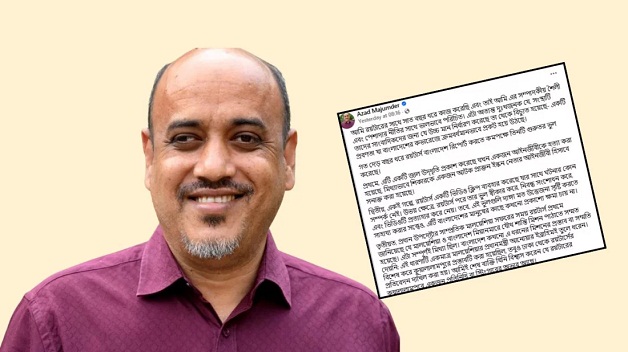 শুক্রবার (৩১ অক্টোবর) স্যোশাল মিডিয়ায় এক স্ট্যাটাস পোস্টের মাধ্যমে তিনি এ কথা বলেন। ফেসবুক স্ট্যাটাসে আজাদ মজুমদার লিখেছেন, ‘আমি রয়টার্সের সঙ্গে সাত বছর ধরে কাজ করেছি এবং তাই আমি এর সম্পাদকীয় শৈলী এবং পেশাদার নীতির সাথে ভালভাবে পরিচিত। এটা অত্যন্ত দুঃখজনক যে, সংস্থাটি তাদের সাংবাদিকদের জন্য যে উচ্চ মান নির্ধারণ করেছে তা থেকে বিচ্যুত হয়েছে- একটি প্রবণতা যা বাংলাদেশের কভারেজে ক্রমবর্ধমানভাবে প্রকট হয়ে উঠছে। গত দেড় বছর ধরে রয়টার্স বাংলাদেশ রিপোর্ট করতে কমপক্ষে তিনটি গুরুতর ভুল করেছে।