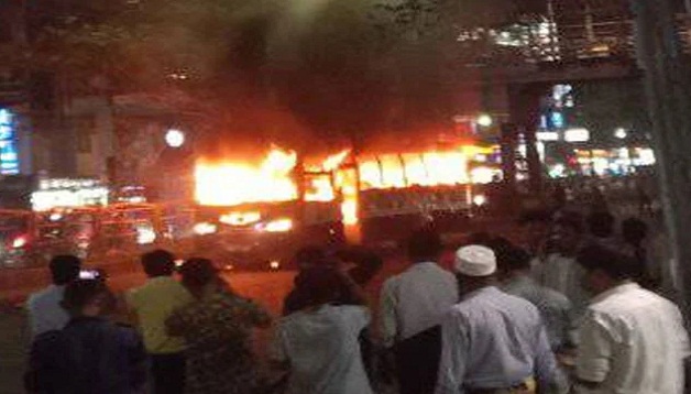 ধানমন্ডিতে ল্যাবএইড হাসপাতালের সামনে বাসে আগুন