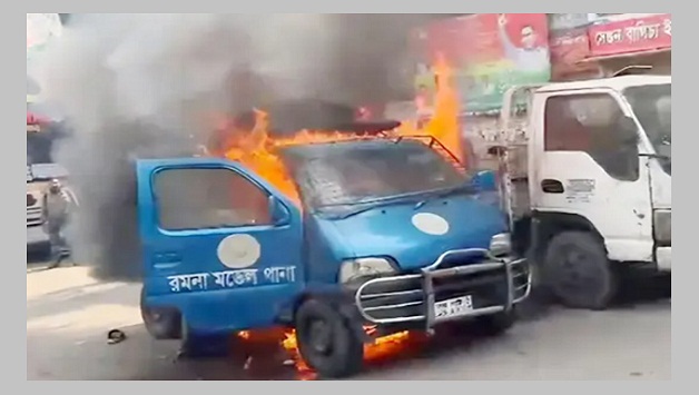 রমনা থানার সামনে হঠাৎ পুলিশের গাড়িতে আগুন