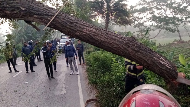 টেকেরহাট পোর্ট স্থল কাম নদী ফায়ার স্টেশনের লিডার মো. ইসমাইল হোসেন ঢাকা পোস্টকে বলেন, আমরা খবর পেয়ে ভোর ৫টা ১৫ মিনিটে ঘটনাস্থলে গিয়ে কাজ শুরু করি। প্রায় দুই ঘণ্টা চেষ্টা চালিয়ে সকাল ৭টার দিকে সড়কের ওপর থেকে গাছটি সরাতে সক্ষম হই। গাছটি মহাসড়কের পাশ থেকে কেটে সড়কের ওপরে ফেলা হয়েছে।