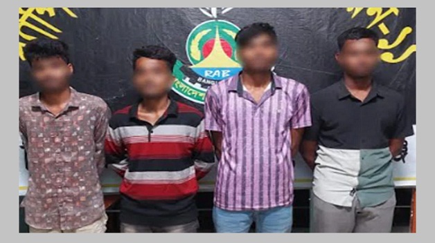 আজ দুপুরে আদমজী র্যাব-১১ কার্যালয় থেকে এক সংবাদ বিজ্ঞপ্তিতে জানানো হয়। গ্রেফতারকৃতরা হলেন রংপুর জেলার হারাগাছ থানার টেংরি এলাকার মোঃ শাজাহান মিয়ার ছেলে সানি আহমেদ সামির, পাইলাটি এলাকার সুলতানের ছেলে ইমন, ভগতিপুর এলাকার মানিক মিয়ার ছেলে রিশাদ ও পিপড়া কাটি এলাকার মহিউদ্দিনের ছেলে আরিফ হোসেন।