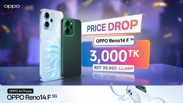 কৌশলগত মূল্যহ্রাসের মধ্য দিয়ে এখন রেনো১৪ এফ ফাইভজি (৮ জিবি + ২৫৬ জিবি) মাত্র ৩৯,৯৯০ টাকায় পাওয়া যাবে। ডিভাইসটি ওপাল ব্লু ও লুমিনাস গ্রিন রঙে পাওয়া যাচ্ছে, যা অপোর নান্দনিকতাকেই তুলে ধরে।