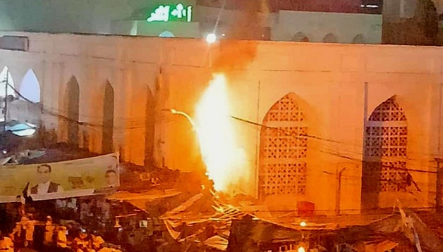 বায়তুল মোকাররম দক্ষিণ গেটে পিলারের ভেতরে আগুন