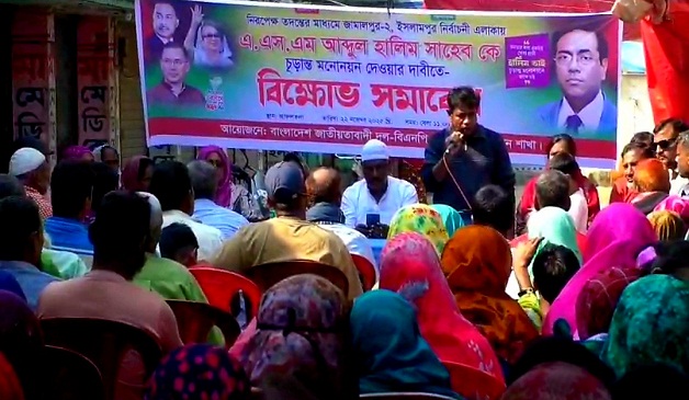 বক্তারা সাবেক এমপি সুলতান মাহমুদ বাবুর মনোনয়ন বাতিল করে সাবেক মন্ত্রী পরিষদ সচিব ও বিএনপি চেয়ারপার্সন বেগম খালেদা জিয়ার উপদেষ্টা এ এস এম আব্দুল হালিমকে মনোনয়ন প্রদানের দাবি জানান । অন্যথায় কঠোর আন্দোলনে যাবার হুশিয়ারি দেন। এর আগে গত ১৯ নভেম্বর সড়কে টায়ার জ্বালিয়ে ও কাফনের কাপড় পড়ে বিক্ষোভ ও অনশন করেন তারা।