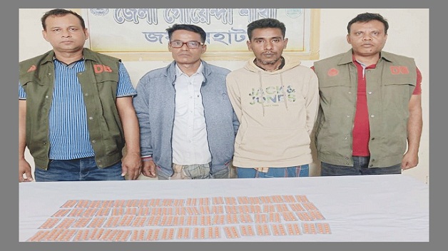 গ্রেফতার হওয়া ব্যক্তিরা হলেন- কালাই উপজেলার দুর্গাপুর বহুতি গ্রামের মহাফেজ মণ্ডলের ছেলে গাজিউল ইসলাম (৪৬) এবং একই গ্রামের জহির উদ্দিনের ছেলে জাবেদুর ইসলাম (৩৬)।
