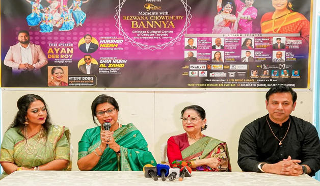 অনলাইন ডেস্ক : কানাডার টরন্টোতে রবীন্দ্রসংগীত শিল্পী রেজওয়ানা চৌধুরী বন্যার একক সংগীত সন্ধ্যা আয়োজন করা হয়েছে। স্থানীয় সময় রবিবার সন্ধ্যায় চাইনিজ কালচারাল সেন্টারে এটি অনুষ্ঠিত হবে।