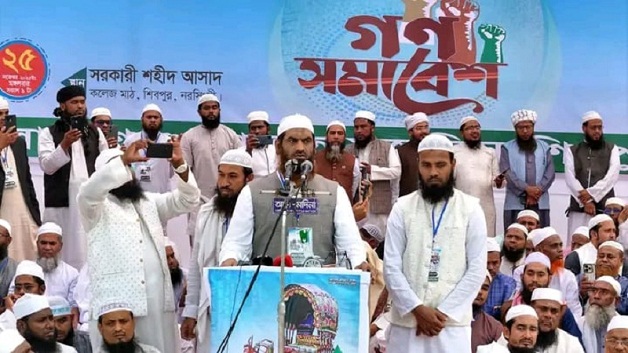 আজ ২৫ নভেম্বর, মঙ্গলবার, সকাল ১০টায় নরসিংদী-৩ (শিবপুর) আসনে বাংলাদেশ খেলাফত মজলিস মনোনীত প্রার্থী ও ঢাকা মহানগর দক্ষিণের সেক্রেটারি জেনারেল মাওলানা রাকীবুল ইসলামের নির্বাচনী গণসমাবেশে প্রধান অতিথির বক্তব্যে তিনি এসব কথা বলেন।