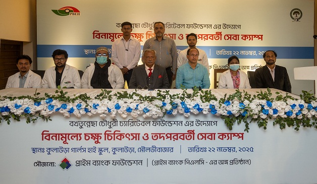 ঢাকা, নভেম্বর ২৭, ২০২৫: প্রাইম ব্যাংক ফাউন্ডেশন (প্রাইম ব্যাংক পিএলসি’র সহযোগী প্রতিষ্ঠান)-এর সহায়তায় মৌলভীবাজারের কুলাউড়ায় দিনব্যাপী আয়োজিত হলো বিনামূল্যে চক্ষু চিকিৎসা ও তদপরবর্তী সেবা ক্যাম্প।
