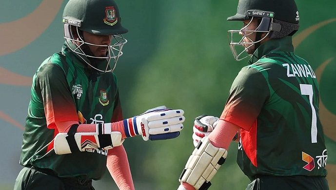 বড় লক্ষ্য তাড়া করতে নেমে শুরুতেই নৈপুণ্য দেখালেন দুই ওপেনার জাওয়াদ আবরার ও রিফাত বেগ। তাদের বিশাল জুটিতেই জয়ের ভিত গড়ে নেয় বাংলাদেশ অনূর্ধ্ব-১৯ দল। শেষদিকে ব্যাটিংয়ে কিছুটা ছন্নছাড়া ভাব দেখা গেলেও আফগানিস্তানকে হারিয়েই মাঠ ছাড়ে লাল সবুজরা। আক্ষেপ রয়ে গেল কেবল আবরারের সেঞ্চুরি মিসের। দলের পক্ষে সর্বোচ্চ ৯৬ রানের ইনিংস খেলে আউট হন আবরার।