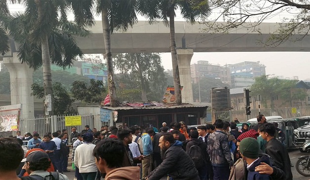 অনলাইন ডেস্ক : রাজধানীর ফার্মগেট এলাকায় সড়ক অবরোধ করে বিক্ষোভ করছেন তেজগাঁও কলেজের শিক্ষার্থীরা।