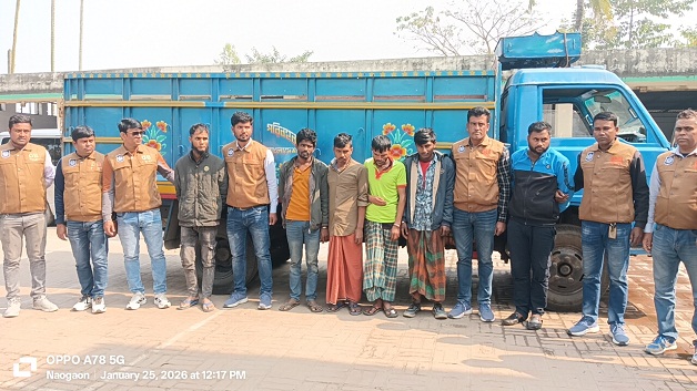 জানা যায়, গত ২২ জানুয়ারি দিনাজপুর জেলার বদরগঞ্জ এলাকা থেকে ট্রাকচালক মারুফ ও তার হেলপার শামীম একটি ট্রাকে (ঢাকা মেট্রো-ট ১৬-০১৩৮) করে প্রায় ২৫০ বস্তা (৫০০ মন) ধান বোঝাই করে নওগাঁ জেলার উদ্দেশ্যে রওনা দেন।