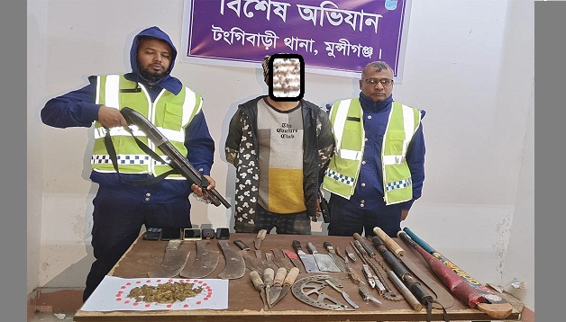 দেশীয় অস্ত্র ও গাঁজাসহ ১জন গ্রেফতার