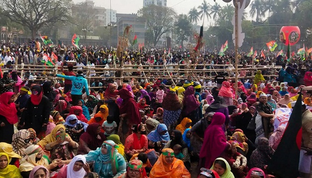 অনলাইন ডেস্ক : রাজশাহীতে বিএনপির ভারপ্রাপ্ত চেয়ারম্যান তারেক রহমানের নির্বাচনী জনসভায় যোগ দিতে সমাবেশস্থলে আসতে শুরু করেছেন নেতাকর্মী ও সমর্থকরা। বৃহস্পতিবার সকাল থেকেই দূর-দুরান্ত থেকে বিভিন্ন যানবাহনে করে বা পায়ে হেঁটে তারা সমাবেশস্থলে জড়ো হতে শুরু করেন। বেলা ১১টার দিকেই কানায় কানায় পূর্ণ হয়ে যায় মাদ্রাসা মাঠ।