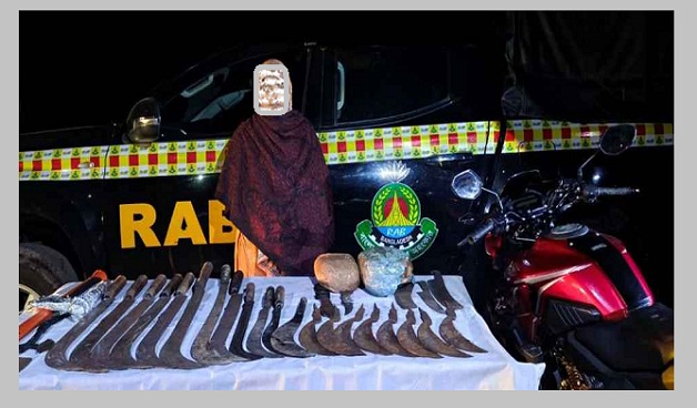 র্যাব-৬ এর কোম্পানি কমান্ডার এএসপি ইমরান জানান, গোপন সংবাদের ভিত্তিতে রাত ১টার দিকে চটকাবাড়িয়া গ্রামের মাদক কারবারি মো. হোসেনের বাড়িতে অভিযান পরিচালনা করা হয়। এসময় ২ কেজি গাঁজা ও ৮টি রাম দাসহ বিপুল পরিমাণ দেশীয় অস্ত্রসহ তাছলিমাকে গ্রেফতার করা হয়।