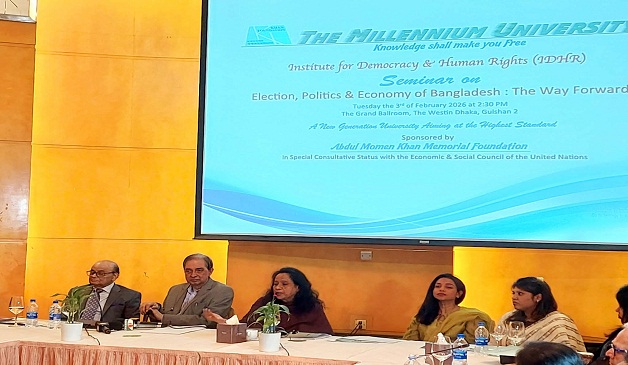 বাইজিদ আহাম্মেদ : বাংলাদেশের নির্বাচন, রাজনীতি ও অর্থনীতি: ভবিষ্যতের দিক নির্দেশনা শীর্ষক সেমিনার অনুষ্ঠিত হয়েছে । মঙ্গলবার (৩ ফেব্রুয়ারী) দুপুরে ঢাকা গুলশানের ওয়েস্টিন গ্র্যান্ড বলরুমে আয়োজিত সেমিনারে বাংলাদেশের ভবিষ্যৎ দিক নির্দেশনাসহ বিভিন্ন বিষয়ে স্বাগত ও সমাপনি বক্তব্য রাখেন, দি মিলেনিয়াম ইউনিভার্সিটি চেয়ারপারসন বোর্ড অফ ট্রাস্টিজ ও খান ফাউন্ডেশনের নির্বাহী পরিচালক, বাংলাদেশ সুপ্রিম কোর্টের অ্যাডভোকেট রোখসানা খন্দকার। এ সময় প্রাসঙ্গিক সারসংক্ষেপ বক্তব্য রাখেন, পলিসি রিসার্চ ইনস্টিটিউট চেয়ারম্যান ডঃ জাইদি সাত্তার।