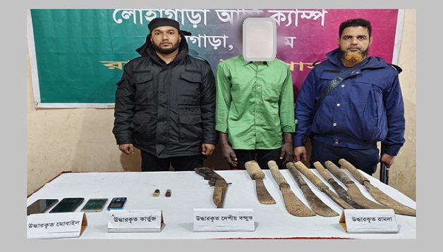এসময় তার কাছ থেকে একটি কাঠের বাটযুক্ত দেশীয় তৈরি একনালা বন্দুক, ১২ বোর শটগানের দুটি লিডবল কার্তুজ এবং আরও কয়েকটি দেশীয় অস্ত্র উদ্ধার করে জব্দ করা হয়।