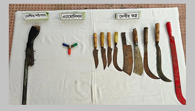 অনলাইন ডেস্ক : মুন্সিগঞ্জের গজারিয়ায় যৌথবাহিনীর বিশেষ অভিযানে একটি দেশিয় শটগান, কার্তুজ, নয়টি দেশিয় ধারালো অস্ত্র এবং ডাকাতির কাজে ব্যবহৃত একটি দ্রুতগামী ট্রলারসহ নয়ন-পিয়াস ডাকাত দলের এক সহযোগীকে আটক করা হয়েছে। মঙ্গলবার রাত ১টা থেকে বুধবার সকাল ৮টা পর্যন্ত উপজেলার গুয়াগাছিয়া ইউনিয়ন এলাকায় এই তল্লাশি অভিযান চালানো হয়।