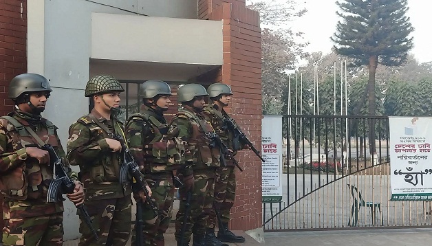 বৃহস্পতিবার সকাল ৭টার দিকে ঢাকা রেসিডেনসিয়াল মডেল কলেজ ভোটকেন্দ্রের সামনে সেনাবাহিনীর সশস্ত্র টহল লক্ষ্য করা যায়। মোহাম্মদপুর সরকারি শারীরিক শিক্ষা কলেজ কেন্দ্র এবং মানিক মিয়া অ্যাভিনিউয়ের রাজধানী উচ্চ বিদ্যালয় কেন্দ্রেও র্যাবের কড়া নিরাপত্তা ছিল।