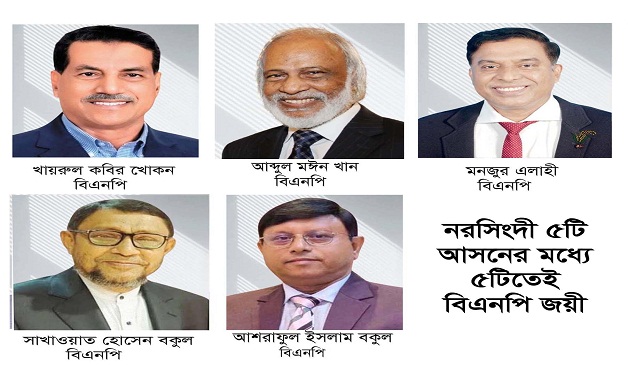 নরসিংদীর ৫ টি  আসনেই বিএনপি প্রার্থীর বিজয়ী