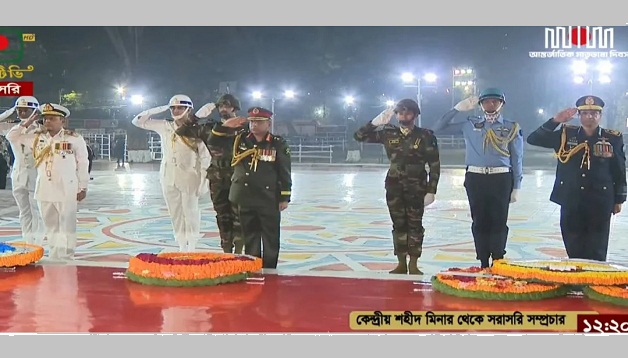 অনলাইন ডেস্ক : আন্তর্জাতিক মাতৃভাষা ও শহীদ দিবসের প্রথম প্রহরে কেন্দ্রীয় শহীদ মিনারে ভাষা শহীদদের প্রতি ফুলেল শ্রদ্ধা নিবেদন করেছেন তিন বাহিনীর প্রধানরা।