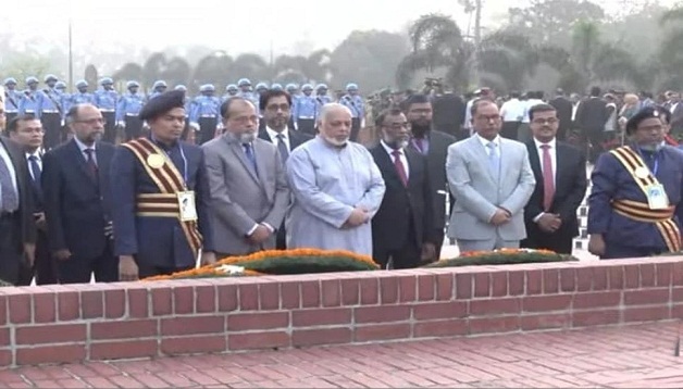 পুষ্পস্তবক অর্পণের পর প্রধান বিচারপতি ও সুপ্রিম কোর্টের বিচারপতিবৃন্দ একাত্তরের মহান মুক্তিযুদ্ধের বীর শহীদদের স্মরণে কিছুক্ষণ নীরবতা পালন করেন।