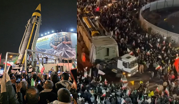 স্থানীয় সময় মঙ্গলবার রাতে তেহরানের প্রধান এক চত্বরে অনুষ্ঠিত সমাবেশে গদর ব্যালিস্টিক ক্ষেপণাস্ত্র প্রকাশ্যে প্রদর্শন করা হয়। সেখানে অংশগ্রহণকারীরা ‘ডেথ টু আমেরিকা’ স্লোগান দেন এবং আইআরজিসির এয়ারোস্পেস ফোর্সের কমান্ডার মাজিদ মুসাভিকে প্রশংসা করে তেল আবিব লক্ষ্য করে হামলার আহ্বান জানান।