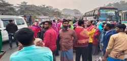 সংগৃহীত ছবি অনলাইন ডেস্ক : ময়মনসিংহের ভালুকা উপজেলার জামিরদিয়া এলাকায় বাসে শ্রমিক তুলে নিয়ে যাওয়ার ঘটনাকে কেন্দ্র করে ঢাকা-ময়মনসিংহ মহাসড়ক অবরোধ করেছে একটি কারখানার শ্রমিকরা। রবিবার (২১ ডিসেম্বর) সকালে এ ঘটনা ঘটে। জানা যায়, উপজেলার জামিরদিয়া এলাকায় অবস্থিত একটি কারখানার শ্রমিকরা প্রতিদিনের মতো সকাল আটটায় কারখানায় উপস্থিত হলেও কাজে যোগদান না করে সকাল সাড়ে ...বিস্তারিত