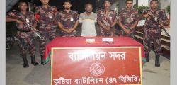 সংগৃহীত ছবি অনলাইন ডেস্ক : কুষ্টিয়ার দৌলতপুর উপজেলার ফিলিপনগর ইউনিয়নের আবেদের ঘাট এলাকা থেকে অস্ত্র ও মাদকসহ শীর্ষ সন্ত্রাসী জামিল মালিথাকে (৪০) আটক করেছে বর্ডার গার্ড বাংলাদেশ (বিজিবি)। তিনি কুখ্যাত ‘চল্লিশ বাহিনী’র প্রধান রাখিবুল ইসলাম রাখির ঘনিষ্ঠ সহযোগী বলে জানা গেছে। আজ সকালে বিষয়টি নিশ্চিত করেছেন দৌলতপুর থানার ওসি সোলাইমান শেখ। এর আগে, ...বিস্তারিত